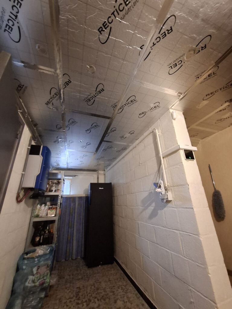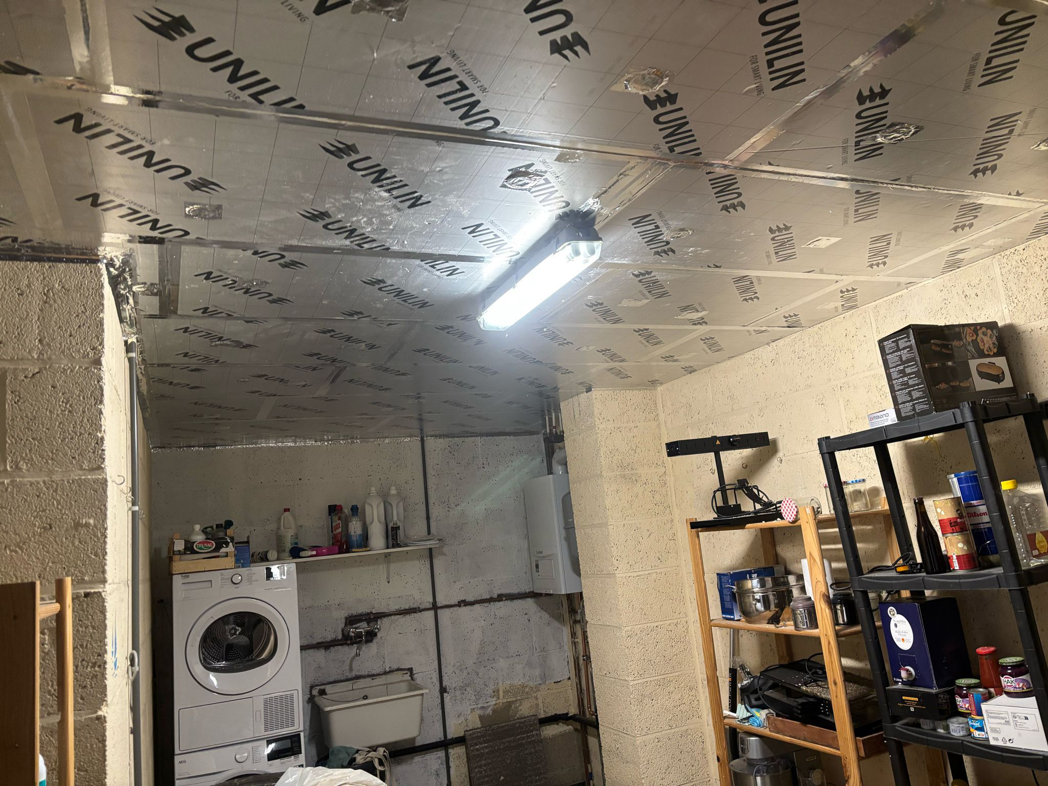 Pour un résultat plus esthétique et régulier, nous proposons la pose de panneaux rigides de mousse expansée. Cette méthode assure une finition propre tout en préservant un maximum de hauteur sous plafond. Elle est particulièrement adaptée dans les caves où l’aspect visuel est important ou si un usage fréquent est prévu.